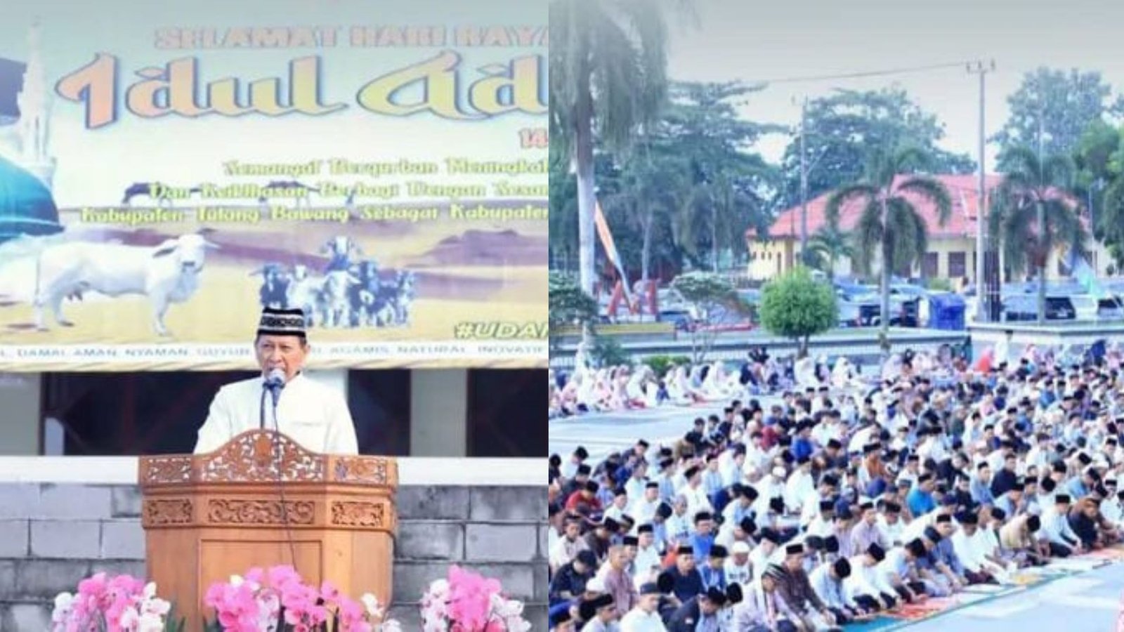 “Idul Adha mengajarkan nilai keikhlasan dan kepedulian. Pemerintah hadir tidak hanya sebagai penyelenggara, tapi juga sebagai bagian dari masyarakat yang siap berbagi”. Ujar Dia